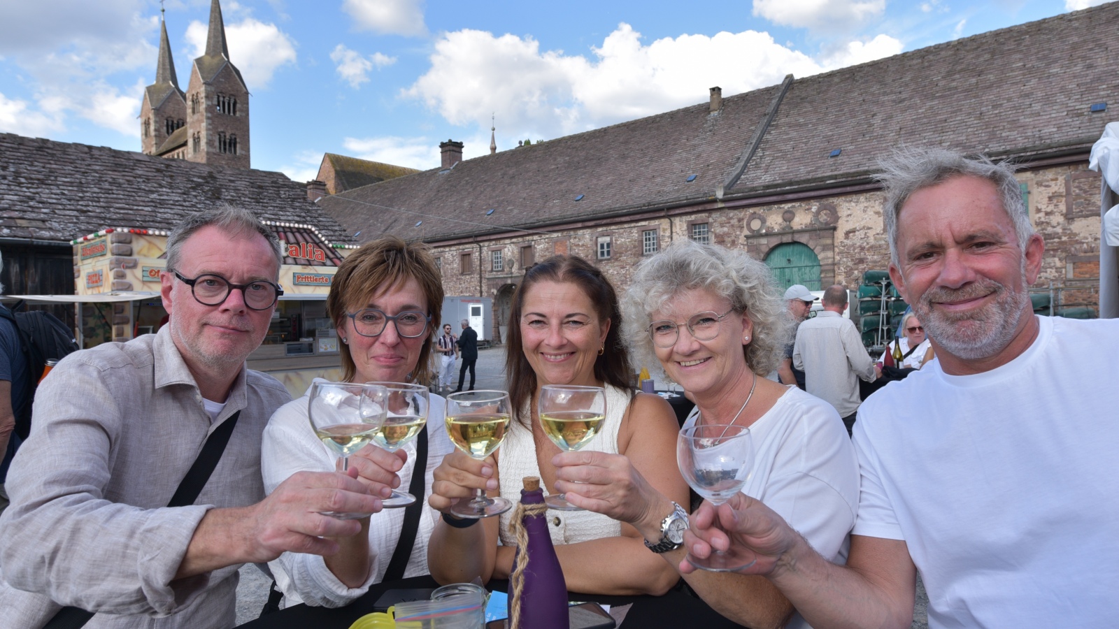 Höxter (TKu). So viele Gäste wie noch nie zog das Benefiz-Weinfest am vergangenen Samstag in den Corveyer Domänenhof: Geschätzt mehr als 1000 Besucherinnen und Besucher genossen bei erneut strahlendem Sonnenschein, gutem Wein, kulinarischen Spezialitäten und stimmungsvoller Musik das Weinfest. 1.003 Weinflaschen gingen über die Theke – im Vorjahr waren es 630. Bereits vor 16 Uhr strömten die ersten Gäste auf das Gelände vor dem Corveyer Weinhaus. Zum siebten Mal luden die Serviceclubs Ladies’ Circle 64 Höxter-Holzminden und Round Table 150 Höxter-Holzminden zu dem Fest ein, das bereits zum vierten Mal in der historischen Kulisse des Domänenhofs stattfand. „Bei traumhaftem Wetter und in malerischer Umgebung mit Blick auf das imposante Westwerk von Corvey bot sich eine ideale Atmosphäre“, meinte eine Besucherin, die ergänzt: „Die Atmosphäre des Domänenhofs passt perfekt zum Weinfest.“