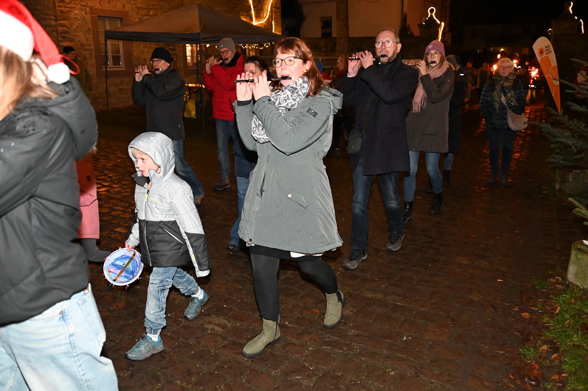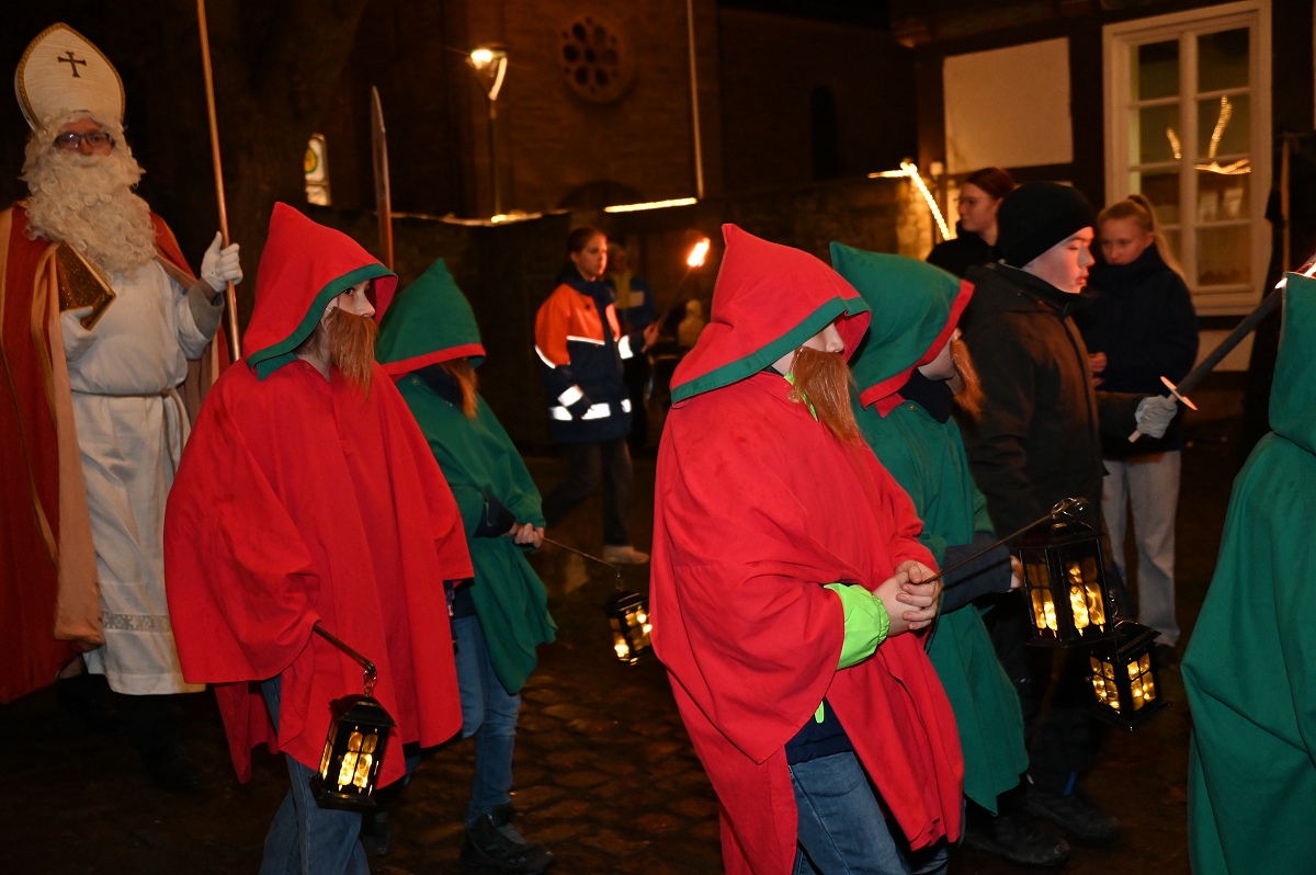 Ein besonderer Höhepunkt für Familien war der Laternenumzug am späten Nachmittag. Gemeinsam zogen Kinder, Eltern und Gäste vom Marktplatz zum Bahnhof, wo der Nikolaus, zur großen Freude der Kinder, mit dem Zug ankam, zusammen mit Knecht Ruprecht, den Zwergen und natürlich den weihnachtlich angezogenen „Nethe-Eseln“. Begleitet von Musik wurde er anschließend zum KuStall geführt, wo er sich viel Zeit für die kleinen Besucher nahm, Nikolaustüten verteilte und für Erinnerungsfotos zur Verfügung stand. Auch der Sonntag bot ein abwechslungsreiches Programm. Nach dem Frühschoppen und dem traditionellen Grünkohlessen lud das Advents-Café mit einer großen Auswahl an selbstgebackenen Kuchen und Torten zum Verweilen ein. Angebote der Pfadfinder, ein Streichelzoo sowie eine Modellbahnanlage im KuStall begeisterten große und kleine Besucher gleichermaßen.