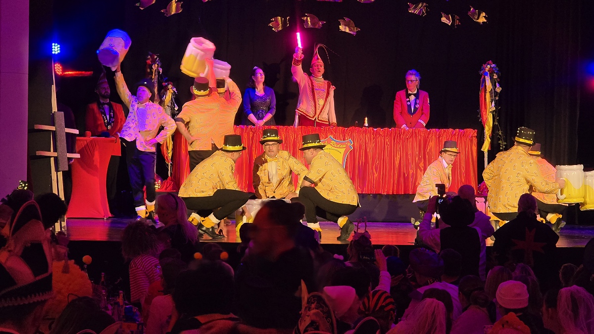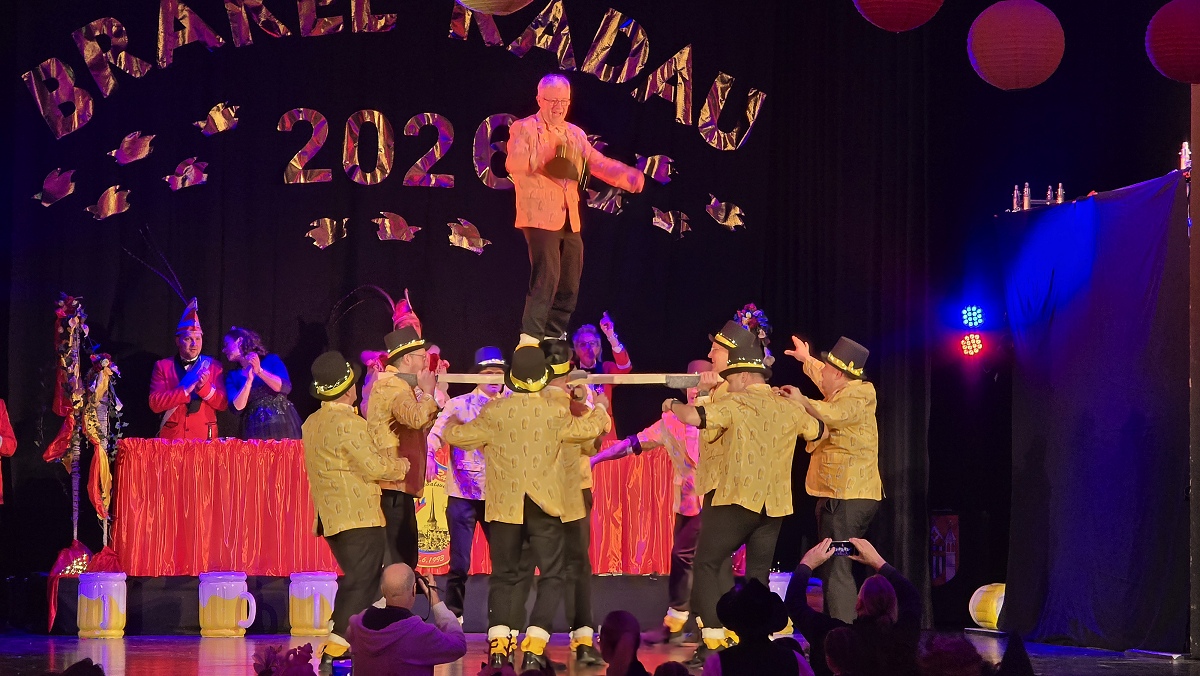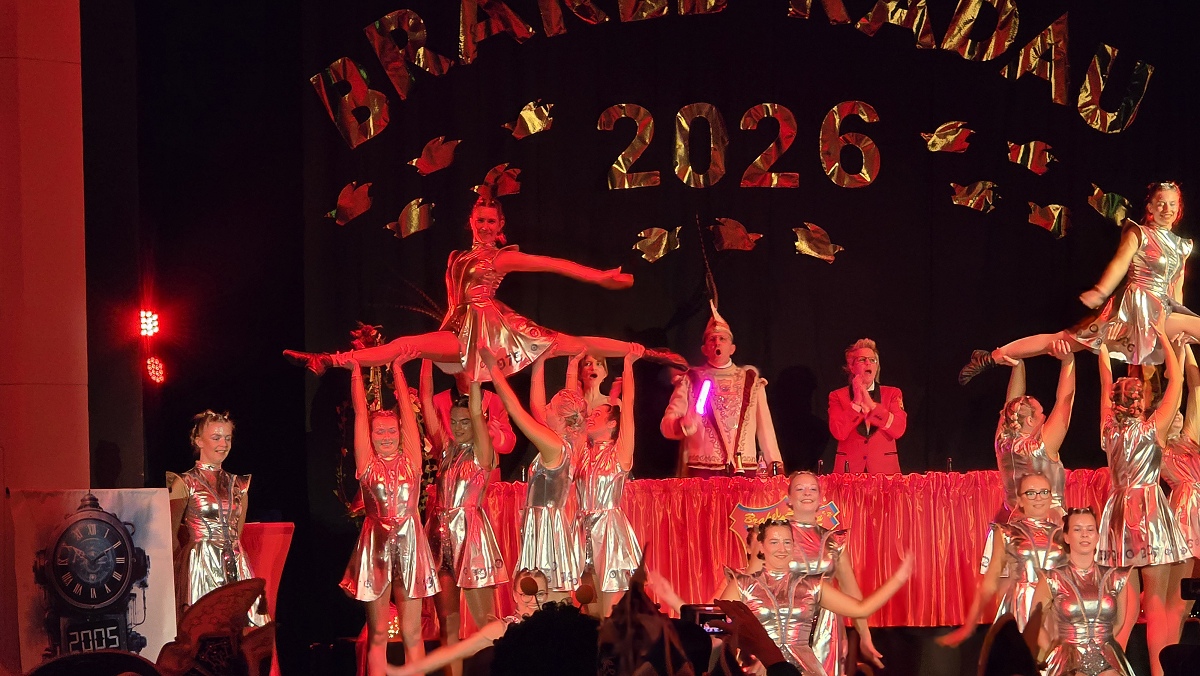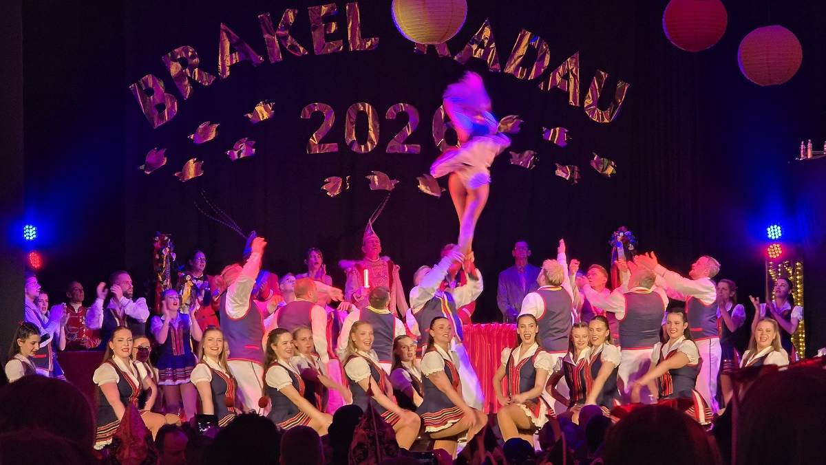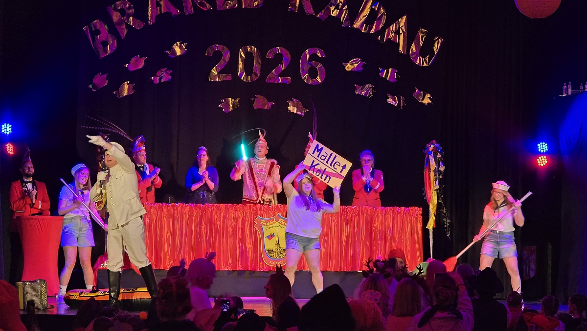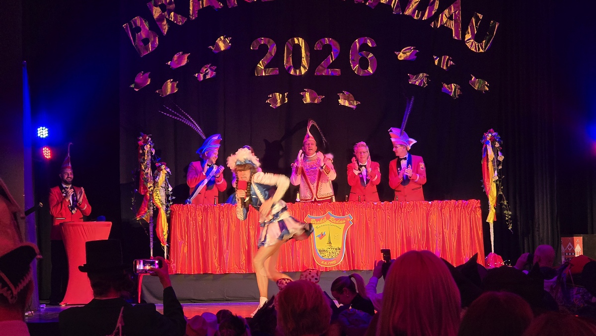 Zuvor hatte sich das scheidende Prinzenpaar Verena und Andreas Futoma mit viel Wehmut vom Narrenvolk verabschiedet. Anschließend bot sich den Gästen ein abwechslungsreiches und hochklassiges Bühnenprogramm. Gruppen wie die Wilden Hühner, die Nethesterne, die blau-weiße Garde aus Brakel, Rott 5 aus Nieheim, die Drohndancer aus Brakel sowie das Tanzcorps Kölsche Vita sorgten mit Gardetänzen und Showeinlagen für Begeisterung. Humorvoll und souverän führten Präsident Steffen Rehermann und zeitweise auch Prinz Mark Elberg durch den Abend. Zahlreiche befreundete Karnevalsgesellschaften und Vereine aus der Region waren mit Abordnungen zu Gast und feierten gemeinsam mit den Brakeler Närrinnen und Narren. Erst spät am Abend fand das offizielle Programm mit einem großen Finale seinen krönenden Abschluss. Doch damit war noch lange nicht Schluss: In der Stadthalle wurde anschließend bis in die frühen Morgenstunden ausgelassen weitergefeiert.