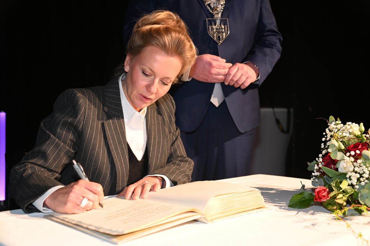 Veranstaltet wurde das Symposium vom Aktionskreis Lehre am Hochschulstandort Höxter. Ziel war es, ein deutliches Zeichen für die hohe Relevanz umweltbezogener Studiengänge und Forschungsaktivitäten am traditionsreichen Standort der Technischen Hochschule OWL zu setzen. Inhaltlich lag der Schwerpunkt insbesondere auf Wasser- und Gewässerschutz, Biodiversität und Klimafolgenanpassung. Die wissenschaftlichen Leiter, Professor Dr. Joachim Dohmann und Bernd Schackers, betonten, dass der interdisziplinäre Austausch praxisnahe und zugleich wissenschaftlich fundierte Perspektiven eröffne. Bereits vor der offiziellen Eröffnung nahm Ministerin Brandes an einem Rundgang durch die Ausstellung relevanter Umweltthemen teil, begleitet von der wissenschaftlichen Leitung sowie weiteren Repräsentanten aus Politik und Verwaltung. Anschließend trug sich die Ministerin in das Goldene Buch der Stadt Höxter ein, bevor Marlies Hemesoth von der Absolventen- und Förderervereinigung AFV Höxter e. V. den Startschuss für die Veranstaltung als erste Rednerin gab. Kreisdirektorin Manuela Kupsch würdigte in ihrer Ansprache die Bedeutung des Hochschulstandorts Höxter für die Umweltforschung und die nachhaltige Entwicklung der Region: Die große Resonanz mit fast 300 Teilnehmenden aus Nordrhein-Westfalen und weiteren Bundesländern sowie Repräsentanten aus Wirtschaft, Politik und Verwaltung sei ein starkes Zeichen für die Bedeutung umweltbezogener Studiengänge und Forschung. Kupsch weiter: „Das Hochschulpräsidium traf einst eine zukunftsorientierte Entscheidung und setzte die Weichen für diese Studiengänge am traditionsreichen Standort der Technischen Hochschule OWL. Ganz im Sinne der Nachhaltigkeit, die das Handeln von Klaus Töpfer prägte, wünschen wir uns auch heute kluge und zukunftsweisende Entscheidungen, um den Hochschulstandort mit umweltrelevanter Lehre und Forschung zu erhalten und weiterzuentwickeln.“ Kupsch hob hervor, dass der Kreis Höxter mit seinen zahlreichen Naturschutzgebieten und Projekten zur Aufwertung von Lebensräumen eine Vorreiterrolle im Umweltbereich einnehme. Sie betonte außerdem den Fachkräftebedarf für die Umweltverwaltung und die zentrale Bedeutung der Ausbildung junger Menschen in Umweltstudiengängen: „Klaus Töpfer hat junge Menschen stets darin bestärkt, sich für eine enkeltaugliche Welt einzusetzen, aber keinesfalls nur mit Protest. Er hat jungen Menschen gezeigt, wie sie die Zukunft im offenen Dialog mitgestalten können. Nachhaltiges Denken und Handeln, Kommunikation und Vermittlung zählten zu seinen Stärken.“