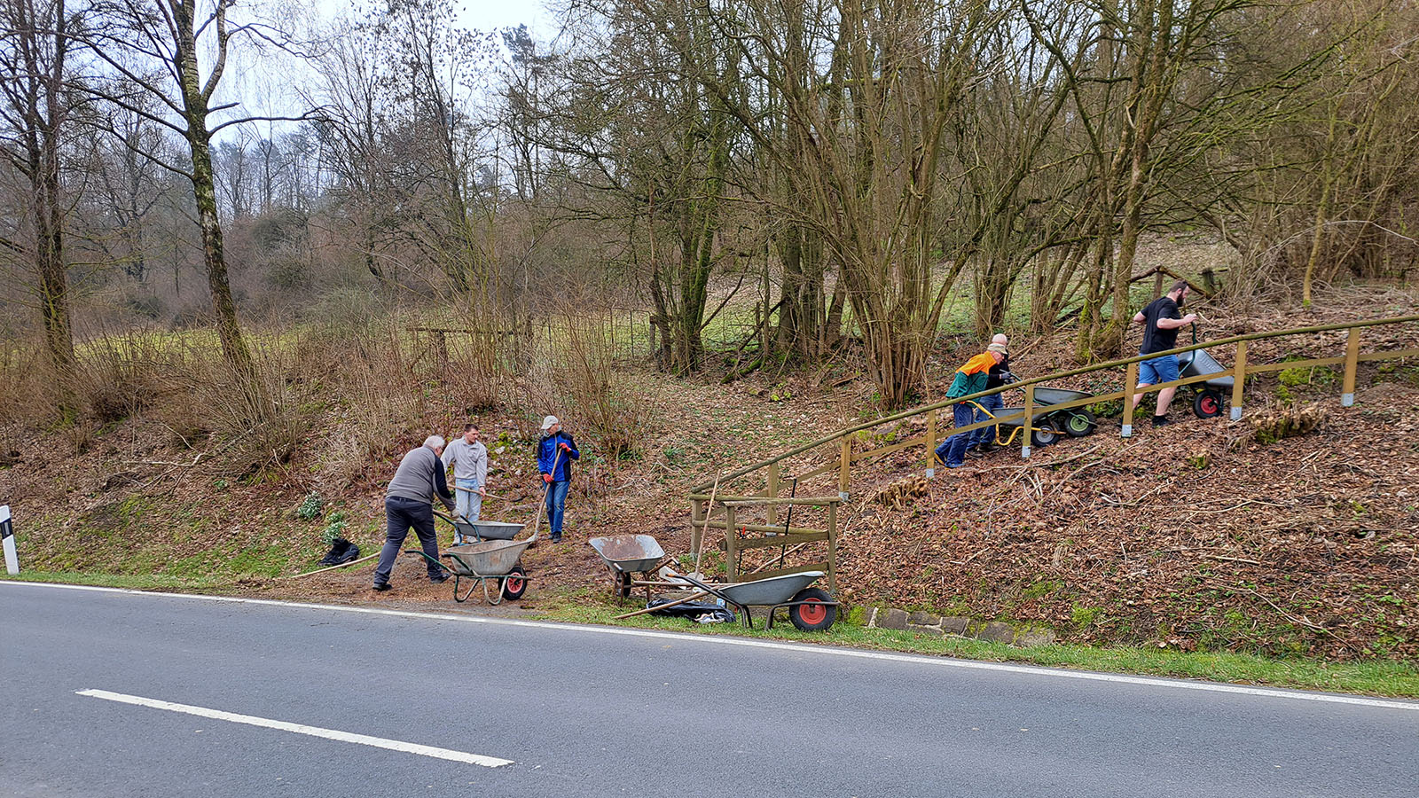 Reelsen (red). Beim Dorfaktionstag des Heimatvereins haben am 21. März 2026 mehr als 30 Mitglieder sowie Freundinnen und Freunde des Vereins das Ortsbild in Reelsen gepflegt. Treffpunkt war um 9 Uhr am Backhaus. Nach einer kurzen Aufgabenverteilung machten sich die großen und kleinen Helferinnen und Helfer an die Arbeit. Sie sammelten Müll ein, pflegten Beete, reinigten das Heimkehrerkreuz, säuberten Backhaus und Bushaltestellen und mulchten den Johannes-Gelhaus-Weg neu. Gegen Mittag gab es zur Stärkung Grillwürstchen und kühle Getränke. Der Heimatverein Reelsen dankte allen Beteiligten, die mit ihrem Einsatz zum Gelingen des Aktionstages beigetragen haben.