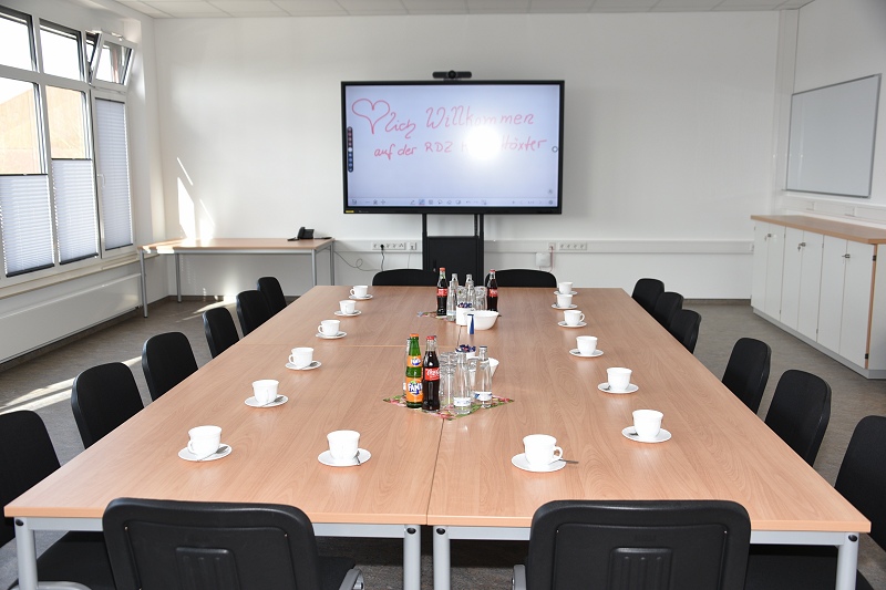 Die Entscheidung für den Neubau der Rettungswache, ein zweigeschossiger Massivbau mit rund 725 Quadratmetern Grundfläche, resultierte in erster Linie aus einer steigenden Mitarbeiterzahl. Aktuell sind 23 Mitarbeiterinnen und Mitarbeiter, davon 15 Notfallsanitäter und 8 Rettungssanitäter, in Brakel tätig. Die alte Wache am Galgenberg in Brakel, direkt an der Feuerwehr-Leitstelle gelegen, entsprach zuletzt bei weitem nicht mehr den aktuellen Anforderungen in puncto Größe und Hygienestandards. Der strategisch günstiger gelegene Standort an der Warburger Straße verbessere nun die Erreichbarkeit des Versorgungsgebiets, insbesondere durch die Nähe zu den Bundesstraßen 64 und 252. Die neue Rettungswache umfasst rund 1.915 Quadratmeter, bietet Räumlichkeiten für Notärzte, beherbergt ausreichend Umkleide-, Hygiene-, Büro- und Ruheräume sowie eine Werkstatt. Durch eine „Schwarz-Weiß-Trennung“ könne kontaminierte Einsatzkleidung abgelegt werden, bevor man durch die Duschschleuse wieder in die Räumlichkeiten gelange, erklärte Notfallsanitäter Michael Derenthal von der Rettungswache Brakel bei einer kleinen Führung. Die Rettungsdienstzentrale nebst Wache beherbergt insgesamt sechs Einsatz- bzw. Ersatzfahrzeuge, darunter ein Notarzteinsatzfahrzeug, zwei Krankentransportwagen und drei Rettungswagen. In der benachbarten Zentrale untergebracht sind neben Büroräumen auch Lagerflächen und Schulungsräume. Insbesondere das Zentrallager für alle Rettungswachen im Kreis Höxter biete Vorteile durch ausreichend Lagerfläche, so Michael Derenthal. Nun könne mehr Rettungsdienst-Verbrauchsmaterial vorgehalten und somit auch günstiger eingekauft werden, da größere Mengen bestellt werden können. Durch die Einrichtung von Unterrichts-, Schulungs- und Besprechungsräumen soll die Ausbildung am Standort künftig optimiert werden. Bald können hier Einsätze durch lebensnahe Situationen nachgestellt und ausgewertet werden. Dazu wurde unter anderem ein Schulungsraum mit sichtbaren Kameras und Mikrofonen ausgestattet. Dieser Raum soll später noch mit Pflegebett und weiteren Möbeln, Utensilien etc. ausgestattet werden, damit ein Einsatz im heimischen Wohnzimmer lebensnah simuliert werden kann.
