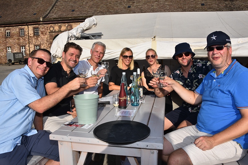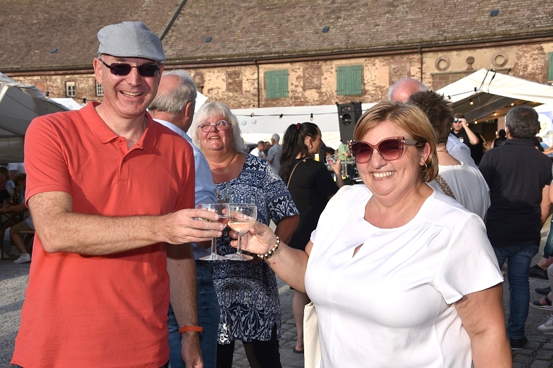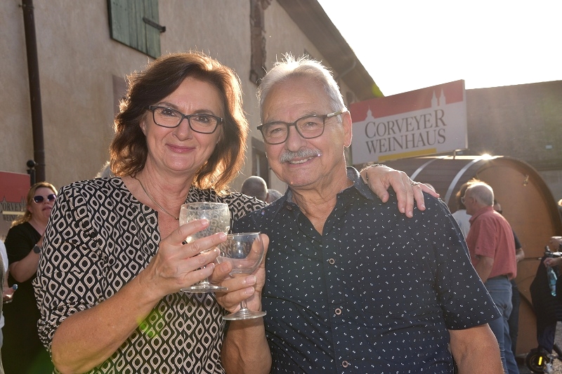 Höxter (TKu). Guter Wein, köstliches Essen, stimmungsvolle Musik und eine ideale Atmosphäre bei strahlendem Wetter: Das sechste Benefiz-Weinfest der Serviceclubs Ladies’ Circle 64 Höxter-Holzminden und Round Table 150 Höxter-Holzminden lockte am vergangenen Samstag über den gesamten Tag erneut geschätzte 600 Besucherinnen und Besucher in den Corveyer Domänenhof, darunter auch die Crew der Bürgerstuben in Höxter. „Heute haben wir frei und genießen den Nachmittag und Abend“, meinte Gabi Lallensack aus Höxter. Bereits vor 16 Uhr strömten die Gäste auf das Gelände vor dem Corveyer Weinhaus, um sich für den guten Zweck durch ein breites Angebot an Weinen zu probieren. „Bei traumhaftem Wetter und in malerischer Kulisse fand das 6. Weinfest bereits zum dritten Mal im Corveyer Domänenhof statt, mit Blick auf das imposante Westwerk von Corvey“, berichtet Tanja Baensch, Präsidentin des Ladies’ Circle 64 Höxter-Holzminden. Die Weinauswahl, eine vielfältige Mischung aus Weiß-, Rosé- und Rotweinen, wurde gemeinsam mit dem Corveyer Weinhaus zusammengestellt und fand großen Anklang bei den Besucherinnen und Besuchern. „Die Atmosphäre des Domänenhofs passt perfekt zum Weinfest“, erklärt Florian Hodes, Präsident des Round Table 150, und eine begeisterte Besucherin ergänzt wiederum: „… und das Weinfest passt perfekt zu Höxter.“ Neben den edlen Tropfen konnten sich die Gäste auch kulinarisch verwöhnen lassen. In diesem Jahr wurden Waffeln und Brezeln, gespendet von der Bäckerei Engel, angeboten. Zudem war der beliebte Foodtruck „3Stars“ mit seinem Angebot aus Burgern und Pommes vor Ort und sorgte für zusätzliche Gaumenfreuden.