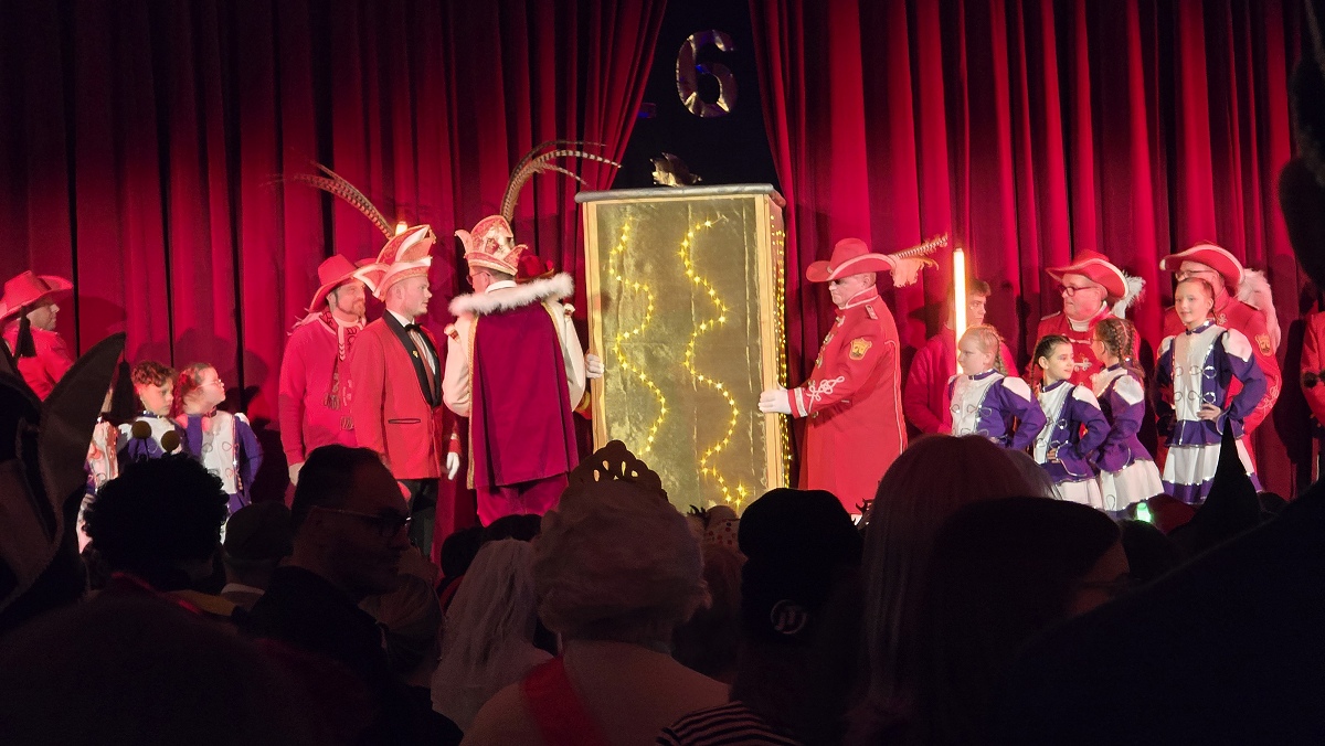 Zuvor hatte sich das scheidende Prinzenpaar Verena und Andreas Futoma mit viel Wehmut vom Narrenvolk verabschiedet. Anschließend bot sich den Gästen ein abwechslungsreiches und hochklassiges Bühnenprogramm. Gruppen wie die Wilden Hühner, die Nethesterne, die blau-weiße Garde aus Brakel, Rott 5 aus Nieheim, die Drohndancer aus Brakel sowie das Tanzcorps Kölsche Vita sorgten mit Gardetänzen und Showeinlagen für Begeisterung. Humorvoll und souverän führten Präsident Steffen Rehermann und zeitweise auch Prinz Mark Elberg durch den Abend. Zahlreiche befreundete Karnevalsgesellschaften und Vereine aus der Region waren mit Abordnungen zu Gast und feierten gemeinsam mit den Brakeler Närrinnen und Narren. Erst spät am Abend fand das offizielle Programm mit einem großen Finale seinen krönenden Abschluss. Doch damit war noch lange nicht Schluss: In der Stadthalle wurde anschließend bis in die frühen Morgenstunden ausgelassen weitergefeiert.