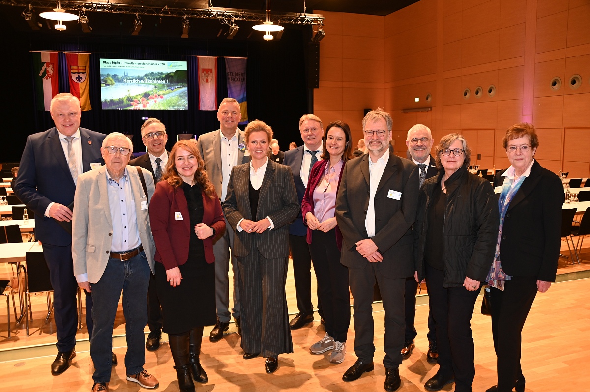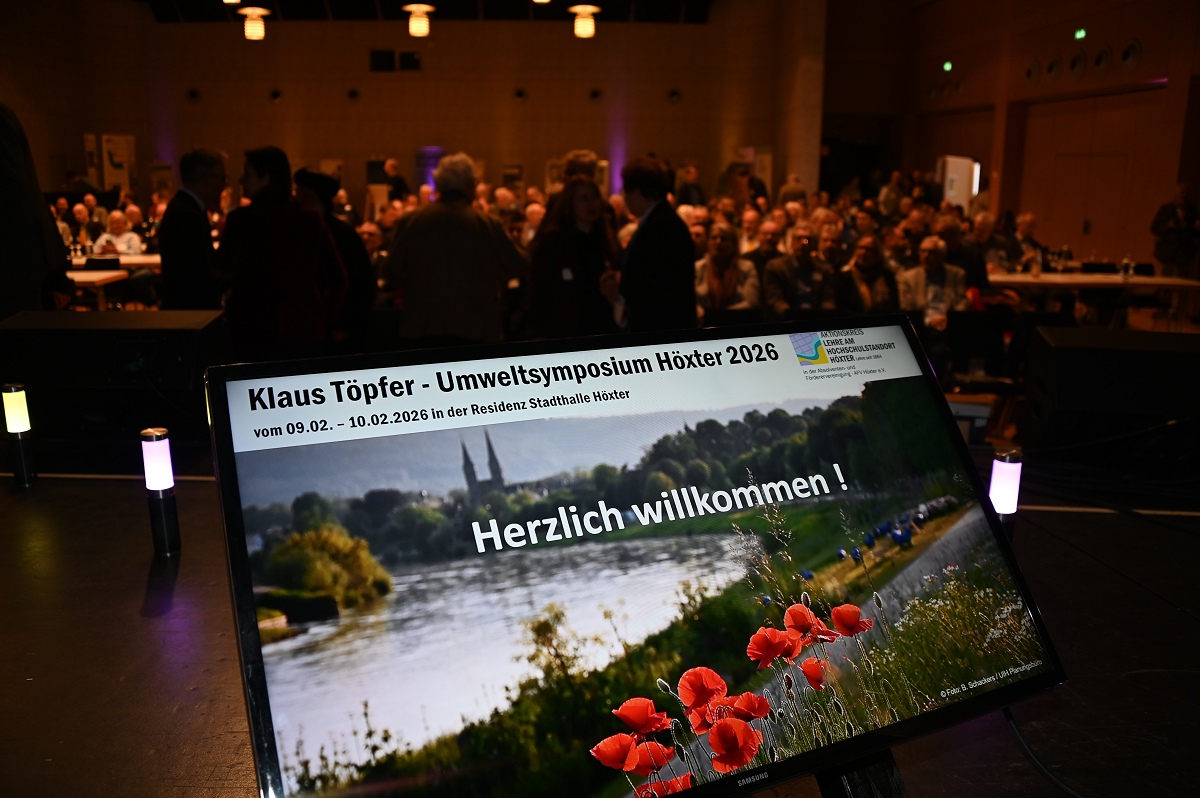 Höxter (TKu). Mit großer Resonanz ist am 9. Februar 2026 das erste Klaus-Töpfer-Umweltsymposium in der Residenz-Stadthalle in Höxter gestartet. Mehr als 250 Teilnehmende aus Wissenschaft, Wirtschaft, Verwaltung und Politik sowie zahlreiche interessierte Bürgerinnen und Bürger nutzten die zweitägige Veranstaltung, um sich intensiv über aktuelle und zukünftige Herausforderungen im Umwelt- und Nachhaltigkeitsbereich auszutauschen. Die Eröffnung des Symposiums übernahm die nordrhein-westfälische Wissenschaftsministerin Ina Brandes, die als Schirmherrin die Bedeutung von Wissenschaft und Forschung für nachhaltige Lösungsansätze unterstrich. Zuvor hatten die Kreisdirektorin des Kreises Höxter, Manuela Kupsch, und der Bürgermeister der Stadt Höxter, Daniel Hartmann, die Gäste willkommen geheißen. Zu den Anwesenden zählten neben Landes- und Europapolitikern auch die Regierungspräsidentin des Regierungsbezirks Detmold, Anna Katharina Bölling, sowie Vertreterinnen und Vertreter weiterer Hochschulen aus Nordrhein-Westfalen und darüber hinaus.