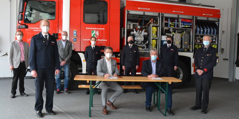 Brakels Bürgermeister Hermann Temme dankte Landrat Michael Stickeln und der Bezirksregierung Höxter, hier stellvertretend Philipp Mantel (Dezernent Katastrophenschutz bei der Bezirksregierung Detmold), und Kreisbrandmeister Rudi Lüke für das entgegengebrachte Vertrauen, das LF20-KatS in Brakel-Erkeln zu stationieren. Er sagte: „ Das Fahrzeug kann unseren hochmotivierten Einsatzkräften die Arbeit zwar nicht gänzlich abnehmen, es sorgt aber für Erleichterung und auch ein Stück mehr Sicherheit.“ Neben dem Einsatz im Katastrophenschutz ergänzt das neue Fahrzeug auch den kommunalen Brandschutz und die bisherigen Strukturen der Feuerwehr der Stadt Brakel gut. „Es hat sich bereits in einem ersten Einsatz bei einem kleinen Flächenbrand nahe der Ortschaft Erkeln bewährt“, berichtet Löschgruppenführer Christopher Pöppe aus Erkeln, der das Fahrzeug nun auch offiziell in Empfang nehmen durfte.